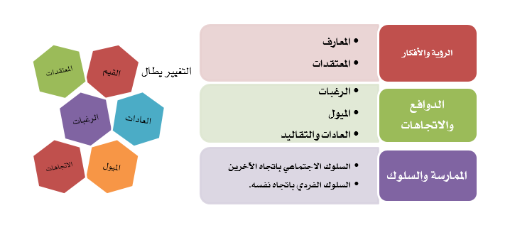 وقد أوضح الدليل الخاص[5] بأنه "غالبًا ما تكون الأسس النظرية للاستراتيجيات والتدخلات السلوكية ضمنية وليست صريحة..."، ويتمحور هذا البرنامج على التغيير في:
